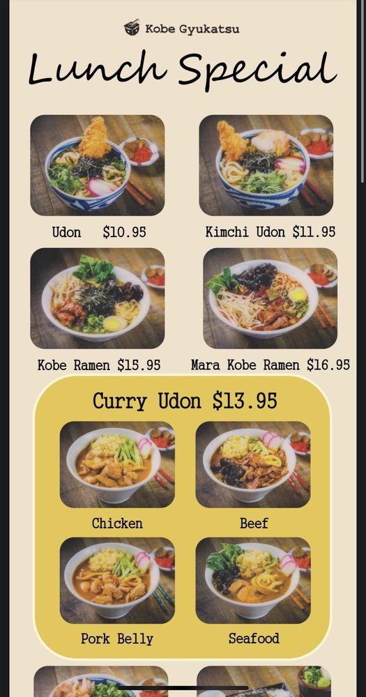 The menu also boasts delightful offerings like Creamy Curry Udon and various pork and chicken cutlet combos, which resonate well with the palate. With options for both takeout and catering, Kobe Kyukatsu serves as an ideal spot for families and groups. Enhanced by friendly service, a casual atmosphere, and outdoor seating, every visit is bound to be special, whether you’re sharing fun meals or savoring personal delicacies.